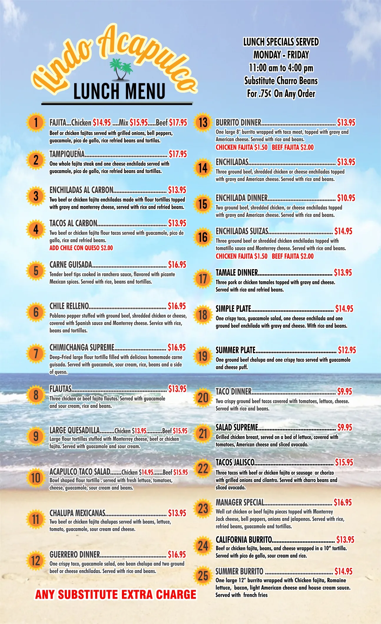 ALL ORDERS SERVED WITH RICE AND BEANS.